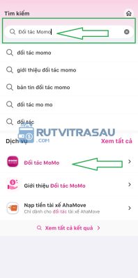 Bước 2: Tìm kiếm với từ khoá: Đối tác Momo và lựa chọn mục “Đối tác momo”.
